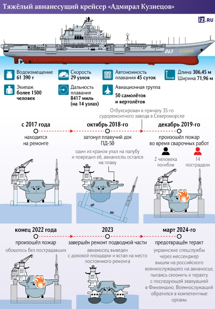 2022年底该舰还报告了一起火灾,幸无人员伤亡。2023年,舰体水下部分的船坞维修完成。同年,有报道称俄海军已开始为“库兹涅佐夫海军元帅”号招募船员。